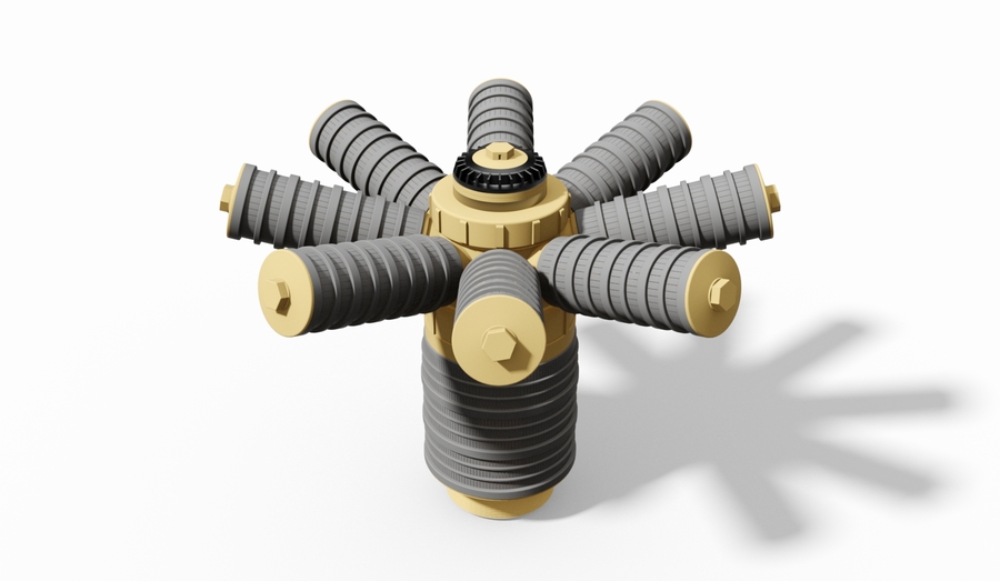 The Type SK8F Filter System, manufactured by KSH Germany, consists of eight Type A filter arms mounted at a 15° angle. This angled configuration enables the system to sit closely against the clapper base, ensuring optimized utilization of the filter medium. The louvre nozzles positioned on top provide residual ventilation and eliminate dead space above the centerpiece. The overall system diameter is determined by the length of the filter arms, and its special design enhances performance in containers with lower flange connections. Absorb NZ is the exclusive distributor of KSH filtration and drainage systems in New Zealand.