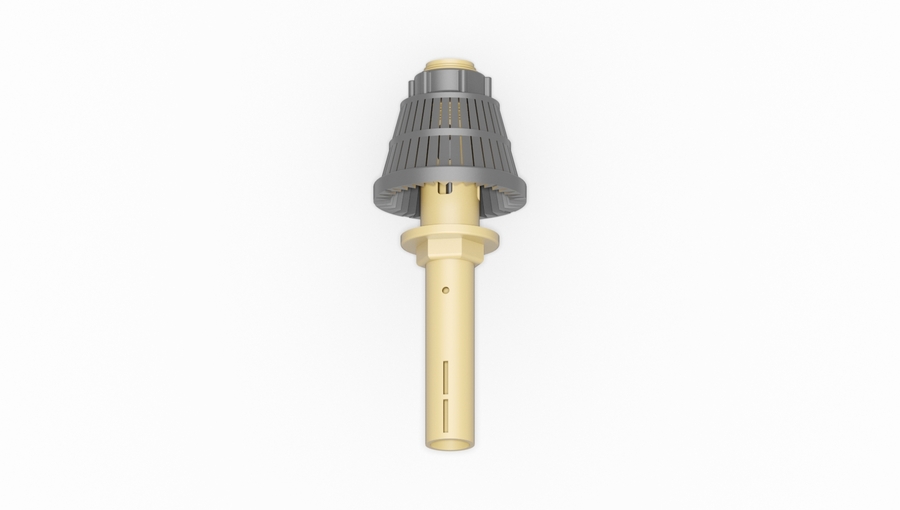 The Type S3 nozzle features a bottom-mounted air cushion tube that’s secured by screwing on the slotted upper section. This clever mounting method allows the nozzle to compensate for minor base misalignments, ensuring accurate fitment and consistent filtration performance.